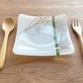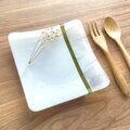 ◎ 温かみのある白色(不透明)をベースに、白色のマーブルと若草色のラ インをポイントにしたシンプルで使いやすいお皿です。