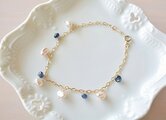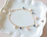 14kgf*淡水パール×ブルーサファイアのブレスレット(デザインチェーン)