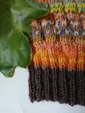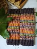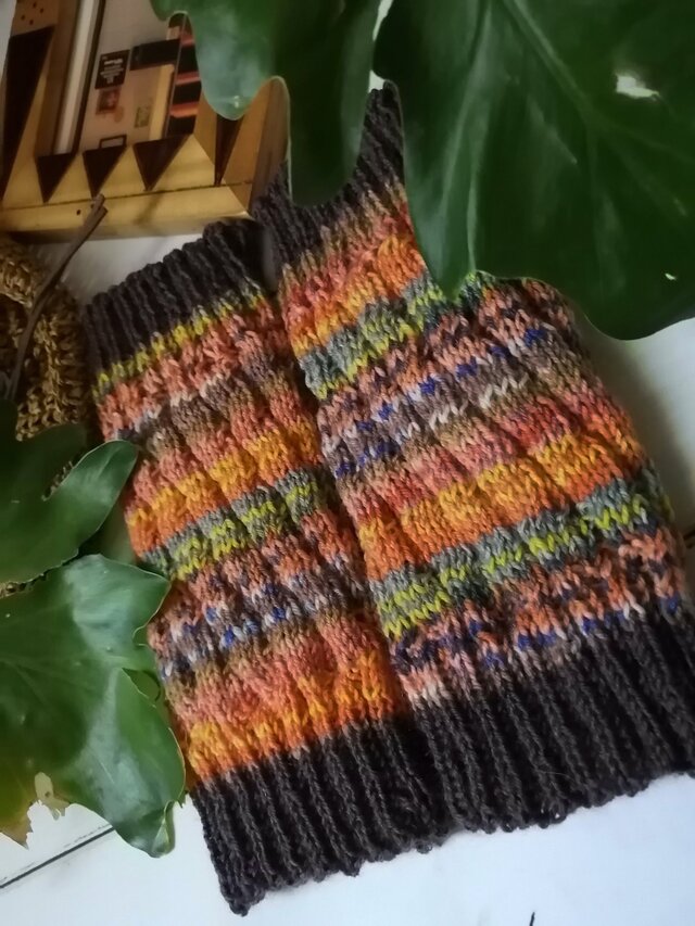 現在は廃番になっている希少なオパール毛糸、星の王子様の「王子様とキツネ」をシックな茶色でまとめた、手編みの短めのレッグウォーマーです。