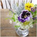 こぼれないお水にパンジーと春のお花をふんわり活けて♪