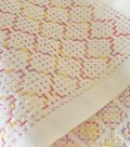 ピンク系の段染めに、黄色がアクセントの糸で刺してみました。