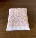 届きました!あみちゃんさんのふきんは、裏の模様もとてもきれいなのでなるべく両方みえる使いかたをしています。 さて、この横長、どう使おうかな、と考えるのが又楽しいです。ありがとうございました。