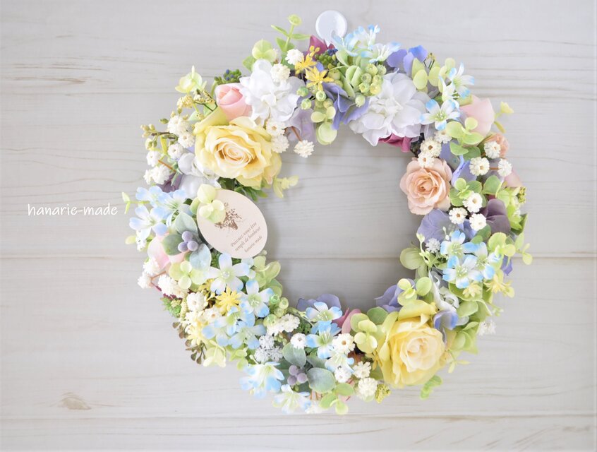 ベビースマイル ヴァニラピンク と イエローのばら リース:ブルー 黄色 ピンク 白 クリーム色 母の日