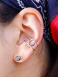 こちらは耳の薄い部分から差し込んで、着用画像のような位置に引っ掛けて留めるイヤーカフです。