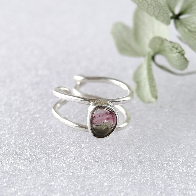 着けると2連のように見えるイヤーカフにバイカラ―トルマリンを留めてみました。