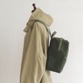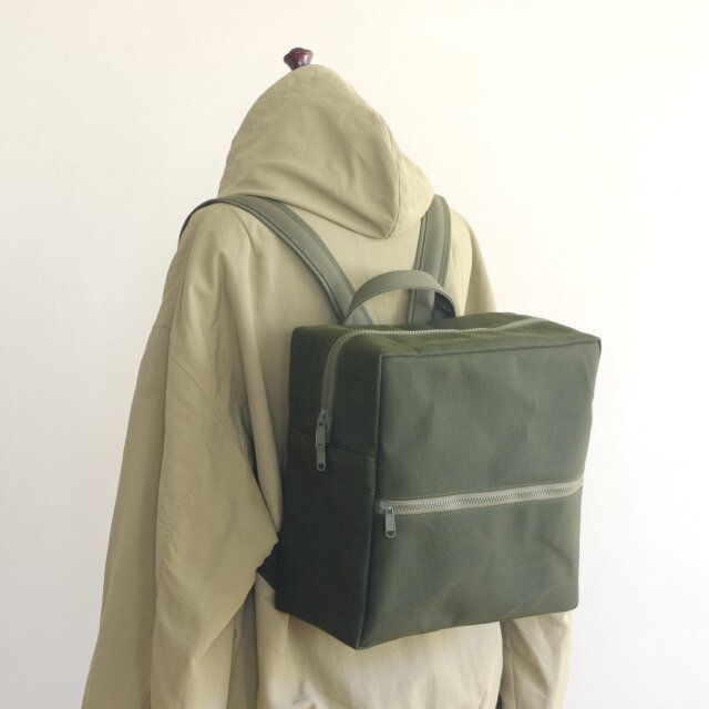すこしめずらしい正方形のカタチの帆布リュックです。