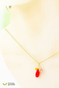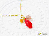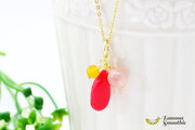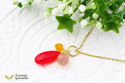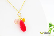 胸元にビビッ♪フューシャピンクカルセドニー × ディープローズクォーツ × カーネリアン 14kgf デザインネックレス