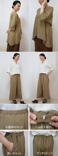 SALE☆コットンリネンのワイドパンツ、便利なトップス付き、サンドベージュ