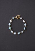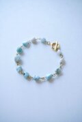 少しずつ色の違う柔らかな雰囲気のブルーメノウと、清々しい水色のガラスビーズのコントラスト。とても繊細で美しいです。 ポイントに配置された真鍮ビーズはほんとうにツボです! とても気に入りました。