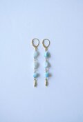 少しずつ色の違う柔らかな雰囲気のブルーメノウと、清々しい水色のガラスビーズのコントラスト。とても繊細で美しいです。 ポイントに配置された真鍮ビーズはほんとうにツボです! とても気に入りました。