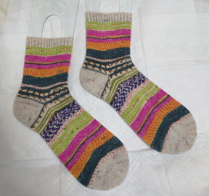 (つま先、踵、履き口は、ショッペルのツイード毛糸使用)