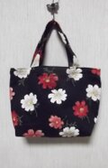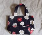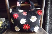 黒地にいろとりどりのマーガレット柄のオックス生地で作ったミニトートバッグです。