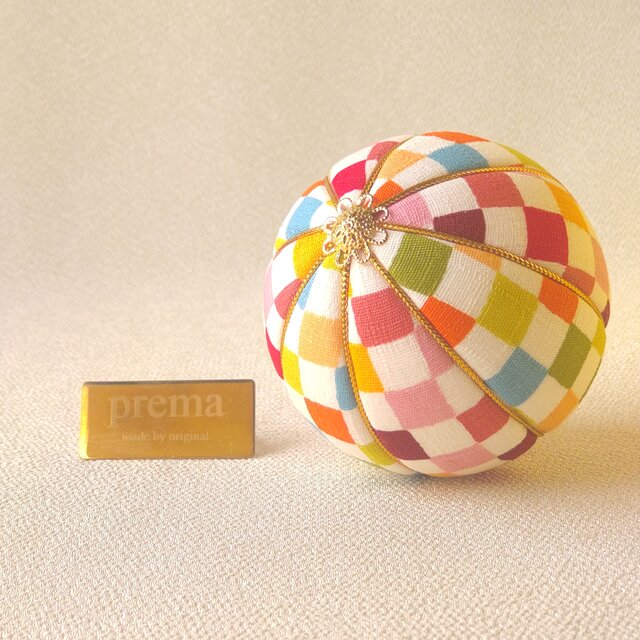コットン100%の生地を木目込みました。それだけで充分すぎるほど美しいハーモニー。装飾をなるたけ省いた、シンプルな真理(まり)です。