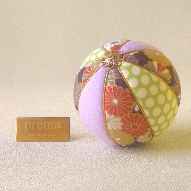コットン100%の生地を木目込みました。それだけで充分すぎるほど美しいハーモニー。装飾をなるたけ省いた、シンプルな真理(まり)です。