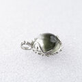 深いグリーンカラーが印象的なガーデンクォーツを、唐草フレームで留めた有機的なデザインのペンダントに仕上げました。