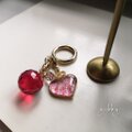 新作/春/初夏/夏/スワロフスキー/クリスタル/レジン/ボルドー/ハート/ピンク/アンティークピンク/ギフト/プレゼント/ゴールド/バックチャーム/キーホルダー/2WAY/赤