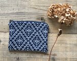 青森県津軽地方で生み出された伝統技法こぎん刺しのポーチです。