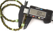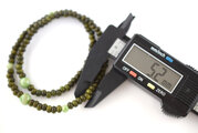 深い緑色で落ち着いた艶が特徴的な緑檀を使用し、アクセントに独山玉を使用した腕輪念珠(ブレスレット)です。