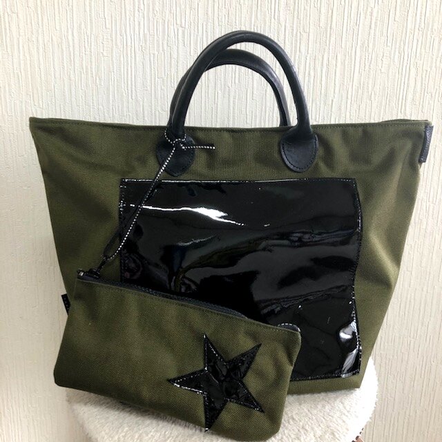 コーデュラナイロントートバック,ポーチつき・カーキグリーン