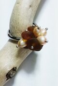 小さな小さなブラウンのシーグラス(ビーチグラス)と淡水パールのリングです。