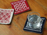 青森の伝統的なこぎん刺しの技法を用いたコースター。