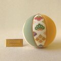 ちりめんとコットン100%の生地を木目込みました。それだけで充分すぎるほど美しいハーモニー。装飾をなるたけ省いた、シンプルな真理(まり)です。