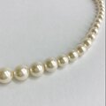 こちらはガラス素材の原玉に、オリジナルカラーのパール塗装を何層にも渡り重ね塗りを施した日本製ガラスパールネックレスになります。きめ細かい質感と程良い艶感でスタンダードなクリーム色。サイズは直径約6mm~12mm玉を使ったグラデーションデザインで、長さが比較的標準的なプリンセスサイズの全長約42cmとなっております。※クラスプには、樹脂パールの中に金具を埋め込んだ鉄砲カンと呼ばれるクラスプを使用しております。