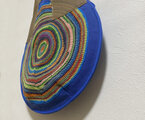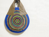 ビビットな綿糸で円編みをして、バッグ面に付けました。