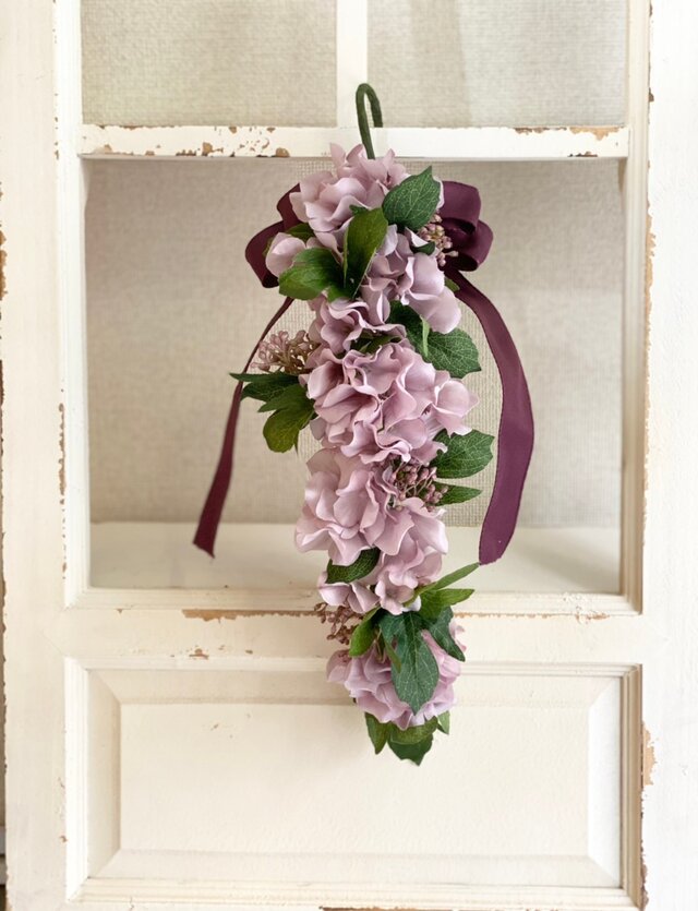 落ち着いたダスティピンクのあじさいの縦長ガーランドに