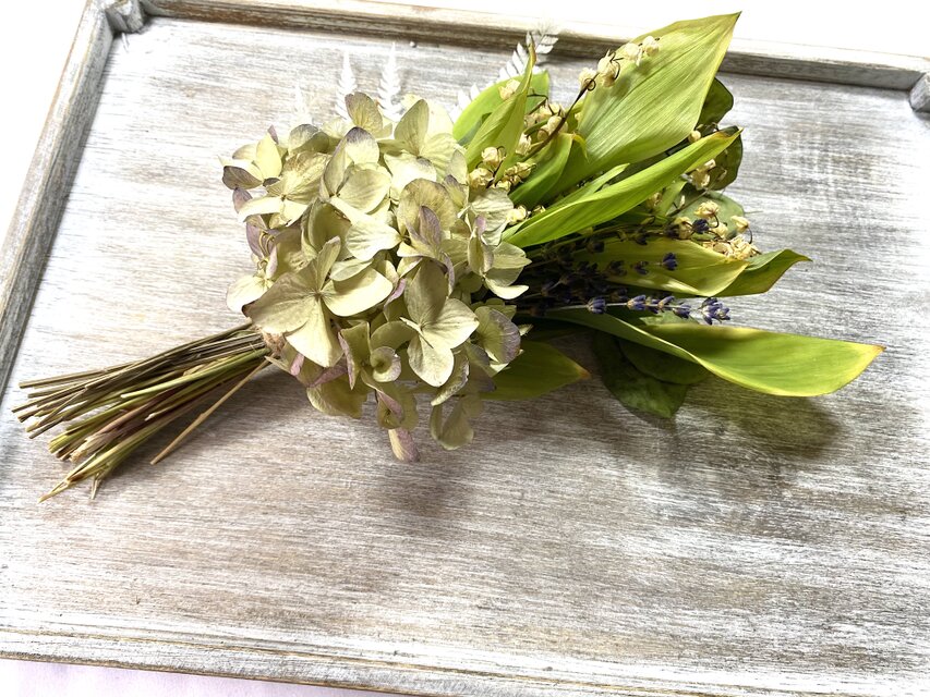 めずらしい鈴蘭のドライフラワーをラベンダーと一緒にスワッグにしました。