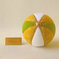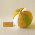 ちりめんとコットン100%の生地を木目込みました。それだけで充分すぎるほど美しいハーモニー。装飾をなるたけ省いた、シンプルな真理(まり)です。
