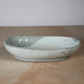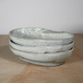 線模様を描いた上に、粉引きをまだらに塗って、変化のある淡い乳濁色になったカレーパスタ鉢です。