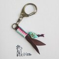 革リボンとターコイズのキーホルダー(#884)(一点限定)