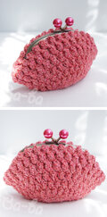 編み地と色を揃えたパールピンクのつまみ付き口金と組み合わせて