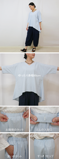 トップスはゆったり60㎝身幅と裾の流れるようなドレープにこだわりました。