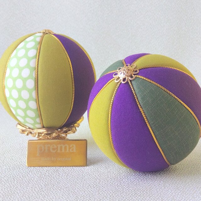 コットン100%の生地を木目込みました。それだけで充分すぎるほど美しいハーモニー。装飾をなるたけ省いた、シンプルな真理(まり)です。
