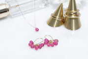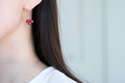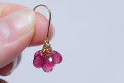 また、ルビーの表面には繊細で精巧なカットを施しておりますので、細かく光を反射し、耳元で優しく揺れながら輝いてくれます。通常のタンブルカットよりも上質で細かいカッティングが施されているので内側から光がにじみ出てくるようにしっとりと輝いてくれます。