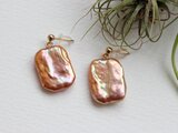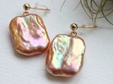 動画有【14kgf】天然色オーロラレクタングルパールピアス