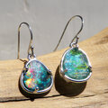多彩な輝きを持つ、ローマングラスを使用したピアス。