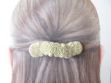 シンプルなぐるぐるモチーフを並べたバレッタです。