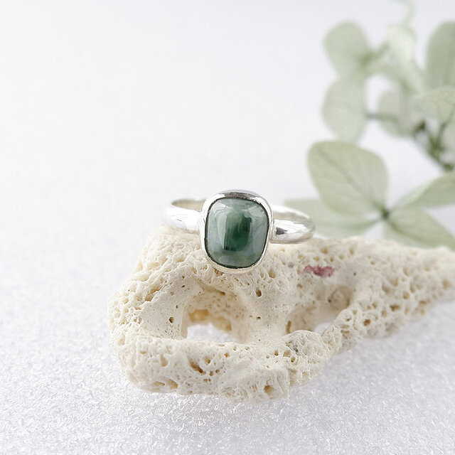 新潟県 糸魚川で産出する翡翠を磨いてシンプルなリングに仕上げました。
