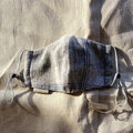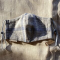 マスクゴムははペールブルー、長さ調整できるアジャスターをつけているので、お好きな長さに調節できます。アジャスターの色はネイビーブルー。チェックの色と合わせています。アジャスターは簡単には動きませんが、ギリギリまで動かすとゴムから落ちてしまうので、ご注意くださいね。