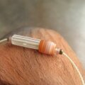 オレンジ×白の古代瑪瑙に、細長いグーズベリーを合わせ、