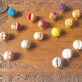 こちらの真理(まり)はひとつにつき数種類、8枚の布を木目込んでいます。グラデーションをよりお楽しみいただけるようギリギリ細かめの区分けを採用しています。