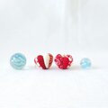 直径2.5センチ。大小のビー玉との比較写真でサイズ感をご確認ください。とっても軽いので耳が全然痛くならないのが嬉しい。