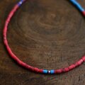 アフガニスタン産の高品質のコーラル(珊瑚)とターコイズ, ラピスラズリを一旦粉末状にして、ビーズに再加工した手間と時間を掛けた大変希少なブレスレットです。