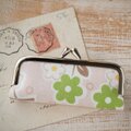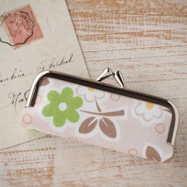 ■ がま口印鑑ケース / ベージュにグリーンの花 ■ hanko case (bgrf)