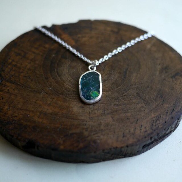 セミクリアブルーのローマンガラス器の銀化残欠片ネックレスです。