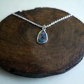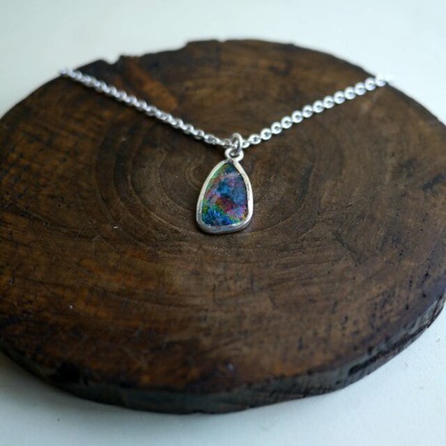 セミクリアブルーのローマンガラス器の銀化残欠片ネックレスです。