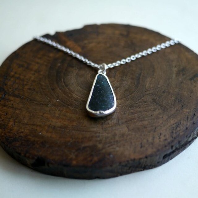 セミクリアブルーのローマンガラス器の銀化残欠片ネックレスです。